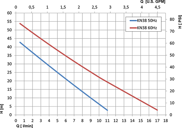 • Hydraulic characteristics for water 20°C at nominal pump speed.