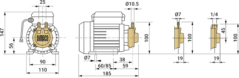 KN38 1 ph 0.15 / 0.18 STD 1/4 / Ø7 / Ø10.5 12 45